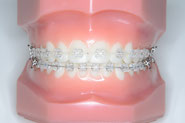 顎矯正手術を行う病院で顎変形症であると診断されたのち、矯正歯科クリニックで健康保険のもと術前矯正治療が開始されます。マルチブラケット装置を用います。よく質問を受けますが、当院の矯正装置はほぼクリアーな透明色のブラケットを前歯から小臼歯部まで使用しています。前歯に金属ブラケットを用いることはございません。健康保険の適応です。